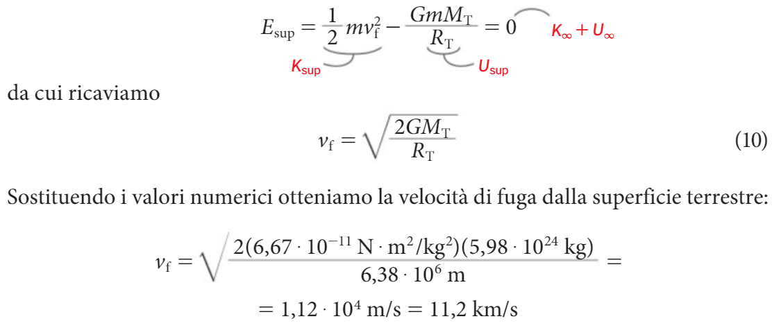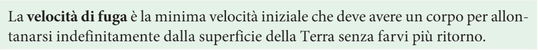 Un corpo, lanciato verso l'alto, non ricade sulla Terra se arriva a distanza infinita conservando un’energia cinetica K maggiore o uguale a zero. Nel caso in cui vi arrivi a velocità praticamente nulla, e quindi con K = 0J, l’oggetto è stato lanciato con la velocità di fuga vf