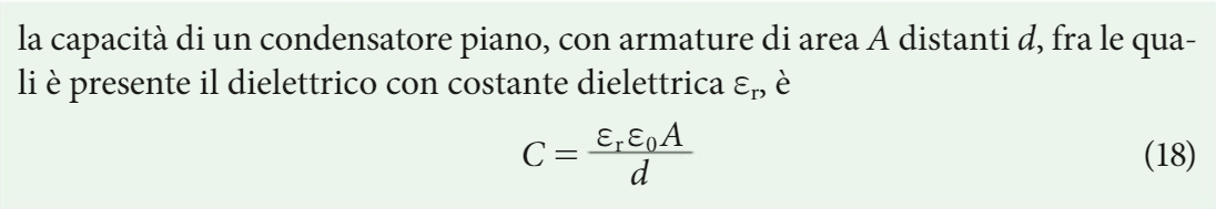 la capacità di un condensatore, all’interno del quale è stato posto un dielettrico, è maggiore di un fattore εr rispetto alla capacità dello stesso condensatore senza il dielettrico