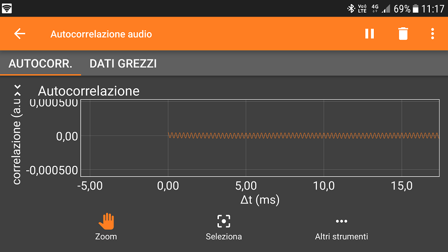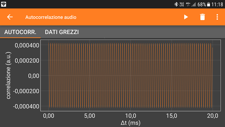 con PHYPHOX seleziona"autocorrelazione audio" (misura la frequenza di un singolo tono) e mettere in play ►