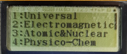 1. al menù SHIFT + 7 si trovano le costanti della fisica, ad es.: